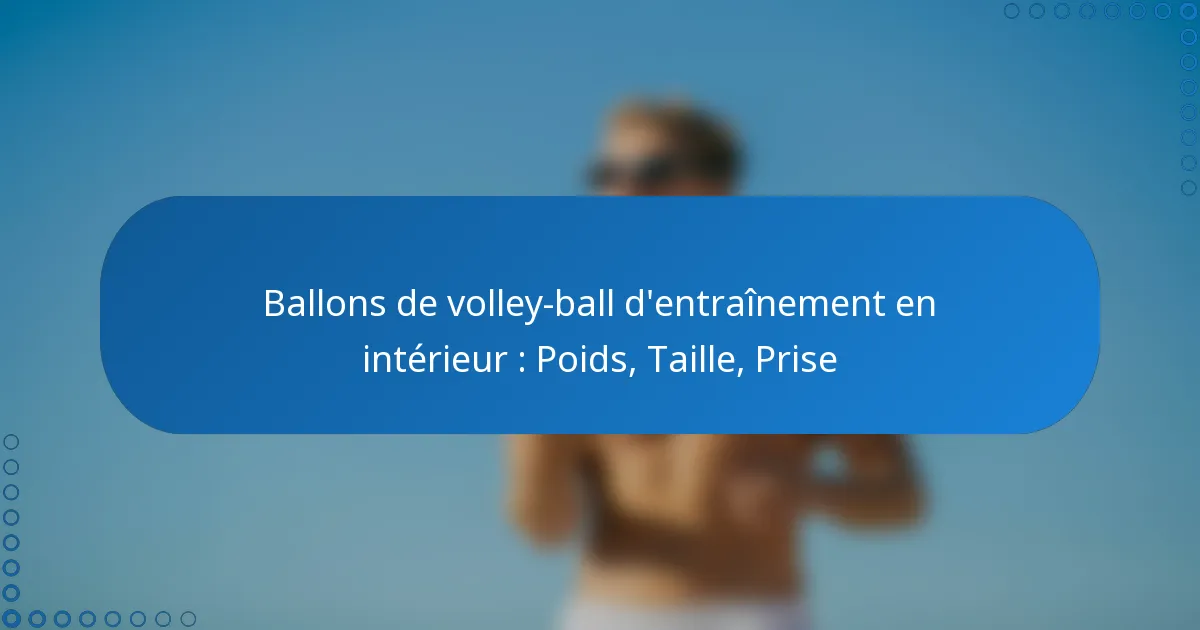 Les ballons de volley-ball d’entraînement en intérieur sont spécifiquement conçus pour améliorer le développement des compétences grâce à leurs attributs uniques, notamment le poids, la taille et la prise. Le poids du ballon joue un rôle crucial dans le contrôle et la maniabilité, tandis que les tailles standard s’adaptent à différents groupes d’âge et niveaux de compétence, la taille 5 étant le choix officiel pour les compétitions adultes. Comprendre ces facteurs est essentiel pour les joueurs cherchant à améliorer efficacement leur jeu.