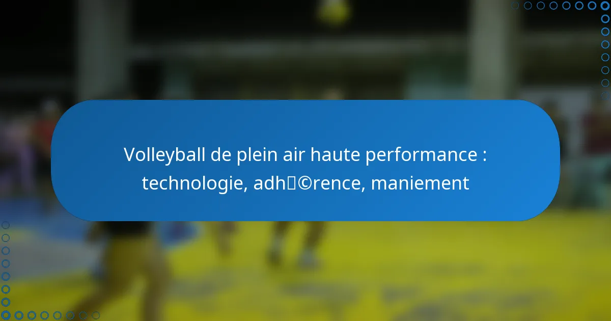 Les joueurs devraient se concentrer sur des caractéristiques de manipulation telles que la prise, le contrôle et la réactivité pour améliorer leur performance dans le volley-ball de haute performance en extérieur. Comprendre comment ces facteurs influencent le comportement du ballon peut conduire à de meilleures techniques de passes, de mises en jeu et de frappes.