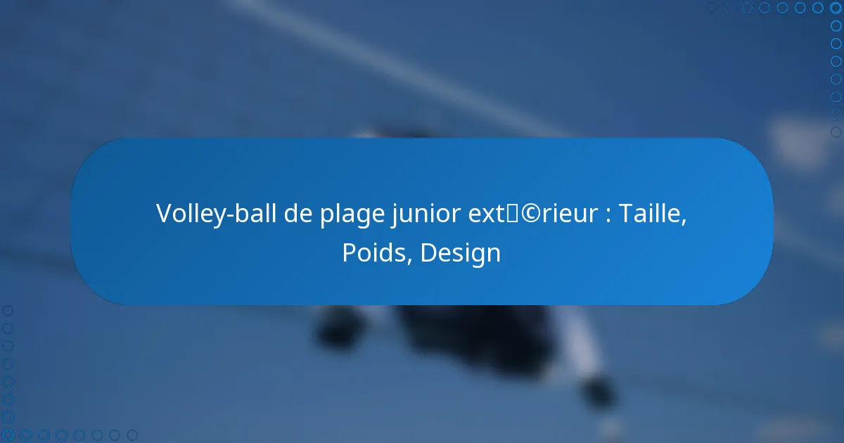 Le design des ballons de beach-volley junior d’extérieur affecte significativement leur performance, leur durabilité et l’expérience du joueur. Les facteurs clés incluent le choix des matériaux, la psychologie des couleurs, les caractéristiques de prise et les innovations de marque, qui contribuent tous à la performance du ballon dans diverses conditions.